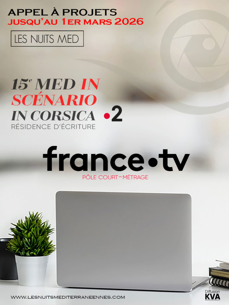 La diffusion KVA (en partenariat avec la Collectivité de Corse et le Centre National du Cinéma et de l’Image animée) a pour objectif principal de soutenir et promouvoir la création dans les territoires de la Corse et de la Méditerranée. Elle est également responsable du dispositif « Talents en Court in Corsica é Méditerraniu », qui vise à soutenir les jeunes auteurs-réalisateurs dans l’écriture de leur film. Dans le cadre du festival itinérant Les Nuits MED di U Filmu Cortu, la résidence d’écriture scénaristique Med In Scenario accompagne un second projet de court-métrage depuis l’écriture du scénario jusqu’à sa diffusion en collaboration avec France Télévisions, partenaire exclusif.