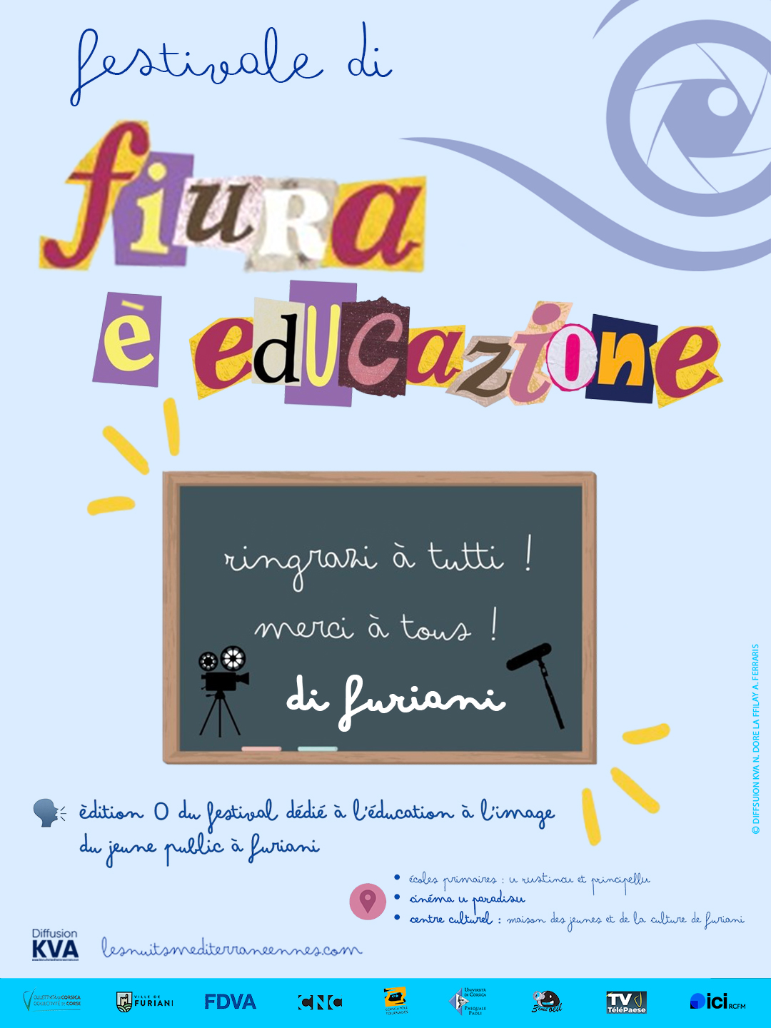 In a globalized world, territories undergoing change are being watched by the loss of traditional benchmarks. As a observer to these changes, DIFFUSION KVA proposes to bring modernity and identity questions and cultural heritage into dialogue through the « MED Nights di u filmu cortu » in Corsica, which remains one of the cradles around the Mediterranean. As a cornerstone of diversity, the association promotes the emergence of young film talent to promote creation while remaining accessible to all in the Mediterranean.